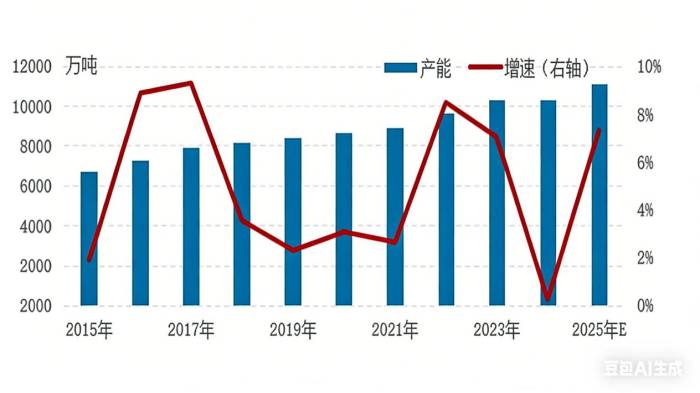 至此,中国氧化铝年内建成产能已高达11085万吨,较2015年增幅66.82%,行业产能已触及历史新高。2015-2025年中国氧化铝产能呈现持续扩张的状态,特别是2023年中国氧化铝产能就已突破1亿吨大关。